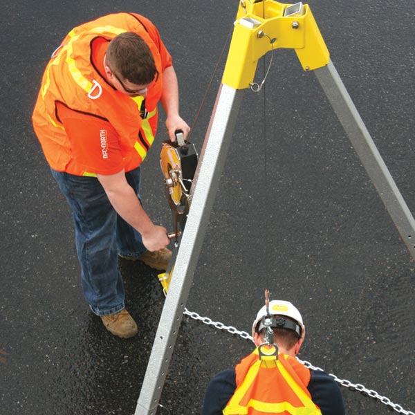 Fall protection tripods are portable anchor points designed to be used for confined space and rescue/retrieval. They are the perfect solution for manholes when equipped with winches and retractables.