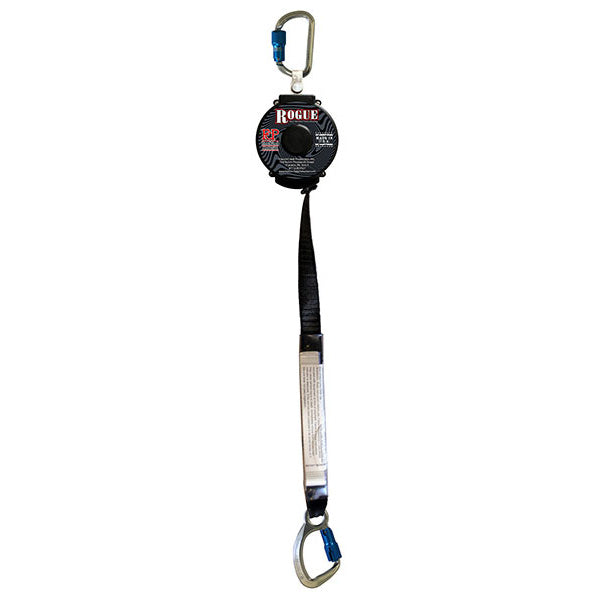 * This Rogue Retractable includes a 7/8” aluminum carabiner on the swivel connector and a 3/4” aluminum captive-eye carabiner on the lifeline