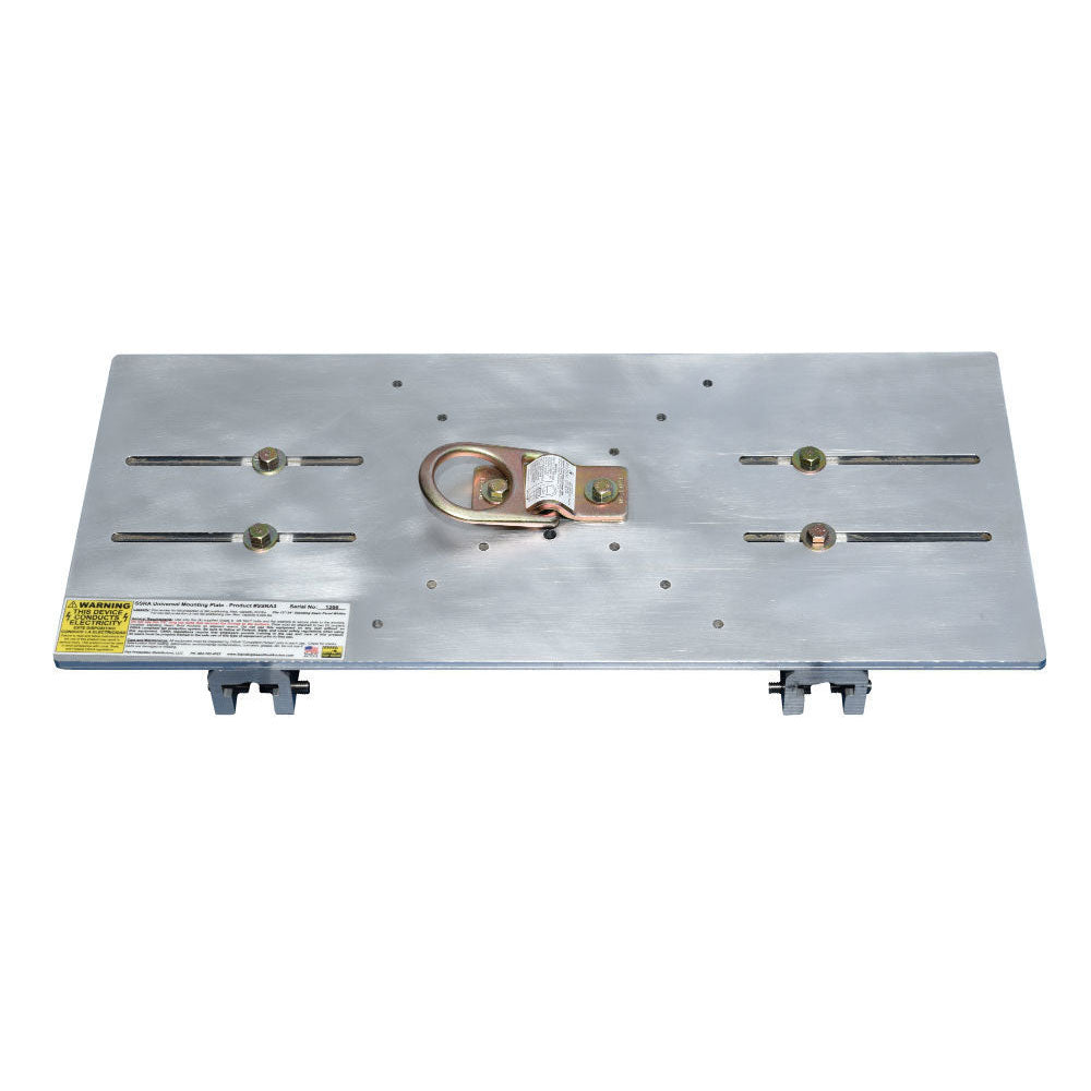 * The anchor plates is pre-drilled with 4 holes to accept the Falltech 7414 D-Ring (included) mounted either vertically for standard anchoring or mounted horizontally for Horizontal Lifeline attachment.